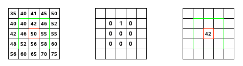 The simplest convolution matrix is called the identity and does nothing. Other known matrices include shift down, mean blur, sharpen, gaussian blur, edges, or emboss.